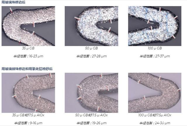 心臟支架、鎳鈦合金支架噴砂機 吉川機械從事噴砂設(shè)備研發(fā)、設(shè)計、銷售、服務已經(jīng)20多年,行業(yè)一直處于領(lǐng)先位置。在醫(yī)療行業(yè)提供了多種各類醫(yī)療產(chǎn)品噴砂設(shè)備,比如:強生醫(yī)療、巴奧米特、新華醫(yī)療、飛渡醫(yī)療、史賽克、魚躍醫(yī)療等。 吉川機械研發(fā)設(shè)計的JCK系列精密微型噴砂機 專業(yè)處理心臟瓣膜鎳鈦支架上的氧化層,從支架上去除氧化層有手動和自動兩種噴砂系統(tǒng),處理過程中不會損傷支架本身,不會改變尺寸和形狀,去除氧化層效率可達百分之百,處理后支架表面一致,無顏色誤差,去氧化層效率快,約30秒能處理好一個支架。 經(jīng)過吉川公司工藝工程師測試,用氧化鋁砂進行定向的噴砂處理可以去除氧化層,平滑表面缺陷并改善外圍支架的表面質(zhì)量。支架的受損區(qū)域很脆,但基礎(chǔ)材料鎳鈦諾卻具有延展性。氧化鋁噴砂磨料使用去氧化層,并且對韌性基體的侵蝕最小,從而在支架撐桿的整個長度上形成均勻的表面光潔度。 市場最新的支架設(shè)計和醫(yī)療植入物要求更大的邊緣倒圓角。圓形邊緣降低了被植入物卡住,其他風險的可能性。氧化鋁微噴丸的半徑為5-15 m,但新的幾何尺寸指定為接近25 m。該半徑可以通過三種途徑實現(xiàn):延長噴砂周期,使用更大尺寸的氧化鋁或完全使用其他磨料。通過測試,我們了解到更長的噴砂周期可以去除更多的團塊,而較大尺寸的氧化鋁會產(chǎn)生過于粗糙而無法拋光的表面。畢竟,氧化鋁顆粒的形狀為塊狀,邊緣稍尖。這給了我們一個可行的選擇:嘗試使用其他類型的磨料。為了克服這一障礙,我們測試了幾種類型的介質(zhì),發(fā)現(xiàn)用玻璃珠噴砂可以在拐角處形成所需的半徑(最大30 m),而不會除去設(shè)備的額外質(zhì)量。結(jié)果是氧化鋁的質(zhì)量提高了十倍。經(jīng)過吉川公司工藝工程師的測試事實說明了結(jié)果的差異。用氧化鋁噴砂處理過的樣品的半徑僅為8-13 m,而用玻璃珠噴砂處理過的樣品的半徑為24-30 m。 經(jīng)過吉川公司工藝工程師最終測試事實證明,最好的心臟支架噴砂工藝需要用氧化鋁砂粗噴砂、再用玻璃珠微噴砂是目前最好的一種噴砂工藝方式。 經(jīng)過粗噴、微噴的產(chǎn)品外徑和內(nèi)徑轉(zhuǎn)角處的半徑可以實現(xiàn),而所需的附加材料去除最少。半徑的大小可以有效地控制,因為它是基于圓形磨料,玻璃珠的大小和速度的??梢钥刂凭哂懈郊影霃降闹Ъ軈^(qū)域。通過機械加工表面,有助于保持支架的疲勞壽命。玻璃珠磨料通常用于必須保持嚴格公差的噴丸處理應用中。玻璃珠對支架表面進行噴丸處理,不會去除任何材料或數(shù)量可忽略不計的材料。如下所示,玻璃珠的尺寸很重要。玻璃珠的尺寸越大;邊緣越圓。玻璃珠有35 ,50 和100 兩種。讓我們看一下使用每種尺寸的樣本測試的結(jié)果。此處顯示的未噴砂的支架表面(500x)邊緣鋒利,并受到制造損壞。半徑范圍僅為3-8 m。為什么用兩種磨料處理比單獨用氧化鋁處理好? 玻璃珠無法消除制造過程中產(chǎn)生的浮渣,回彈和其他損壞;只有氧化鋁可以。氧化鋁不能產(chǎn)生真正的圓形邊緣。但是,它確實可以提供電拋光所需的理想表面光潔度。一個不能替代另一個。通過使用多步驟過程,植入物表面可以使用經(jīng)過驗證的相同設(shè)備獲得兩全其美的效果。在該過程中添加第二種研磨劑聽起來可能需要更多的勞動力,但實際上比其他修邊過程更有效。例如,電拋光可以產(chǎn)生較大的半徑,但它也會從整個零件中去除過多的材料,而不僅僅是角部,從而損害了支架的疲勞壽命。