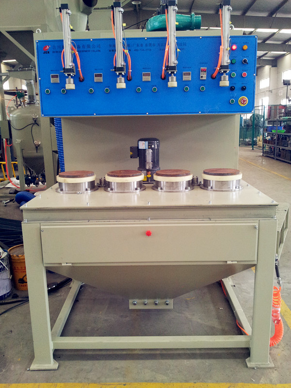 一、 設(shè)備組成: a)?? :主機(jī) i.????? 主機(jī)由小轉(zhuǎn)盤(pán)轉(zhuǎn)動(dòng)機(jī)構(gòu)、噴槍擺動(dòng)機(jī)構(gòu)、噴砂室、操縱系統(tǒng)、儀表箱等組成,電機(jī)均采用臺(tái)灣臺(tái)邦牌。室體由3mm冷軋鋼板焊接而成,內(nèi)外表面噴漆,外形尺寸: 1350X1250X1950(mm)。 ii.????? 4支噴砂槍分4組全部固定在軸上定點(diǎn)對(duì)工件噴砂;噴嘴材質(zhì):進(jìn)口碳化硼噴嘴。噴嘴通徑:Ф8mm。